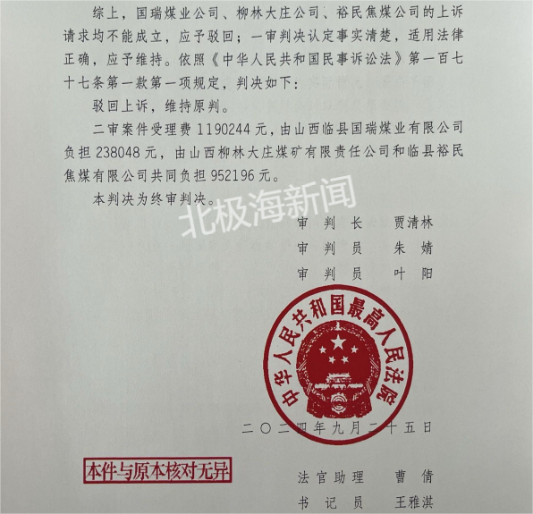 原被告均提出上诉,2024年9月,最高法作出终审判决,维持山西高院原判。联合诉讼,历时1年仍未审结