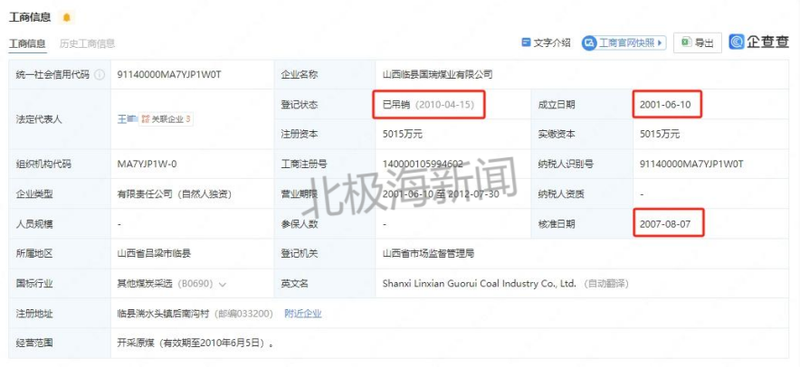 2010年4月15日,国瑞煤业营业执照被工商部门吊销。但国瑞煤业并未注销,仍存在登记撤销与实体存续不一致的情况,这也为后来的煤矿关闭补偿款争议埋下了伏笔。
