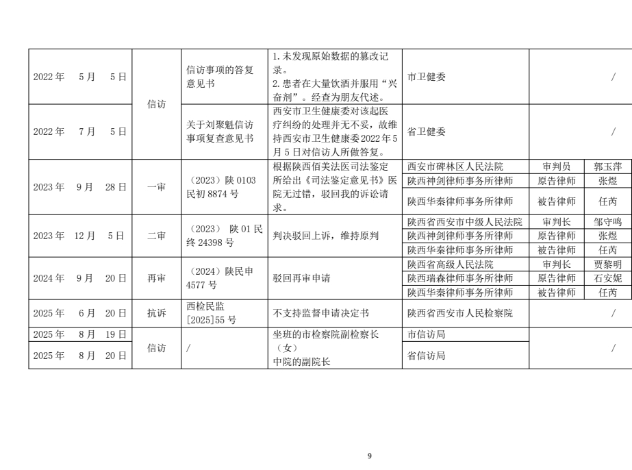 2、陕西省卫健委信访复查:2022年6月7日,我向陕西省信访局提交《信访事项复查复核申请书》,申请对西安市卫健委的答复进行复查。2022年7月5日,陕西省卫健委出具《关于刘聚魁信访事项复查意见书》,复查意见为"西安市卫生健康委对该起医疗纠纷的处理并无不妥,维持西安市卫生健康委 2022年5月5日作出的答复".